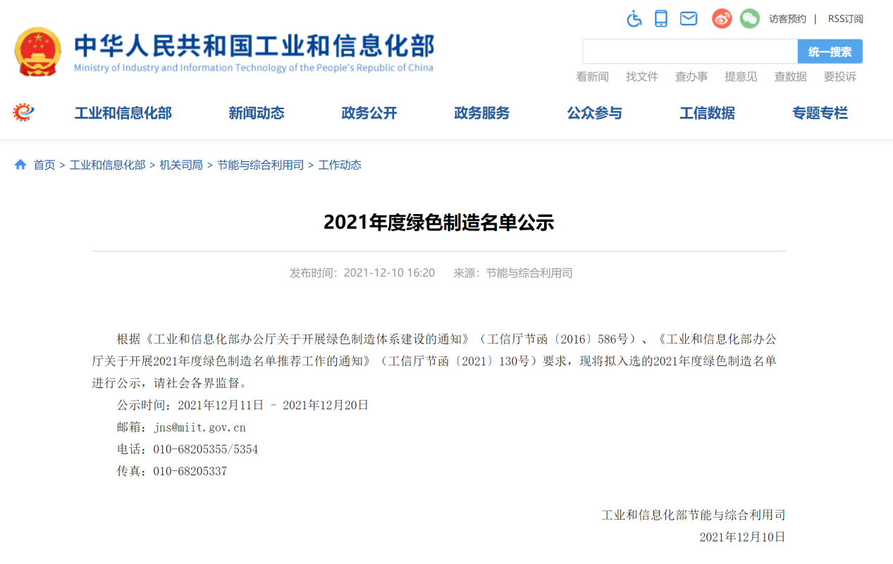 2021年12月10日,国家工业和信息化部发布了2021年度绿色制造名单,北京科吉的服务对象中共有2家绿色工厂、2家绿色供应链管理示范企业和9种绿色设计产品成功入选。