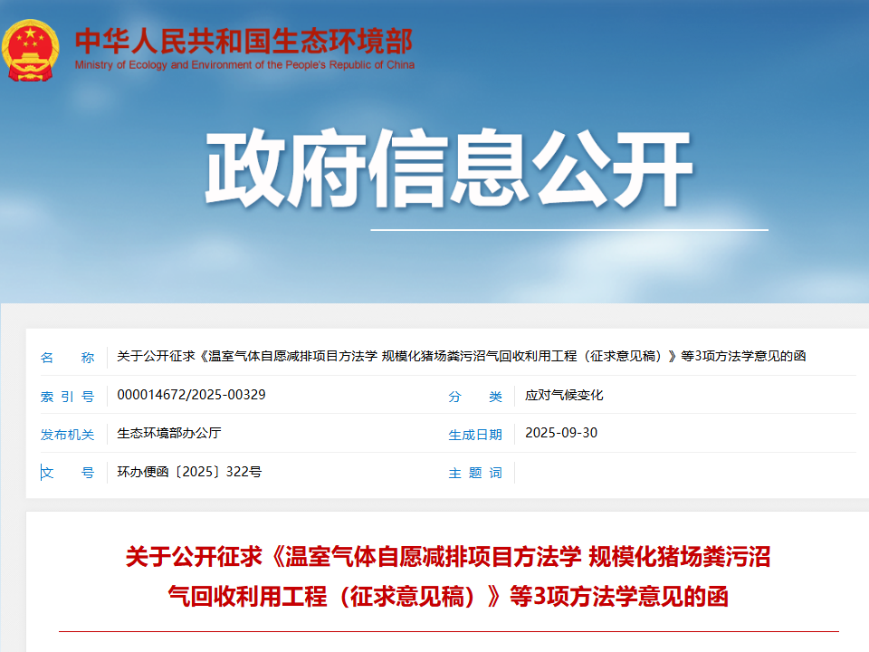 【公司要闻】重磅发布!| 科吉参编的CCER方法学—规模化猪场粪污沼气回收利用工程方法学开始征求意见